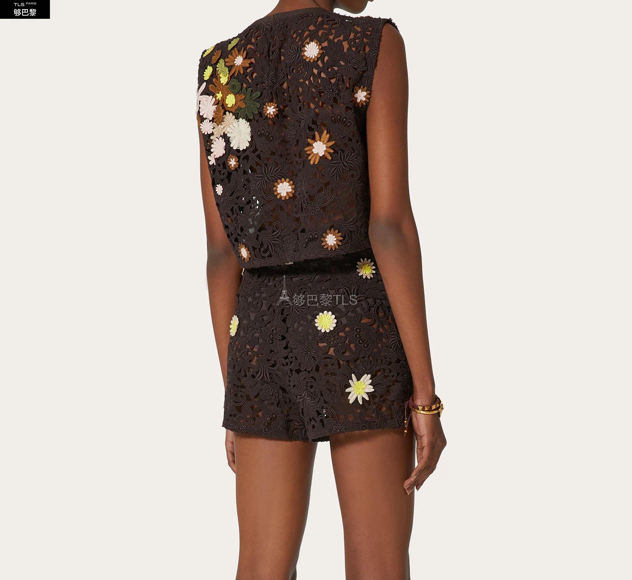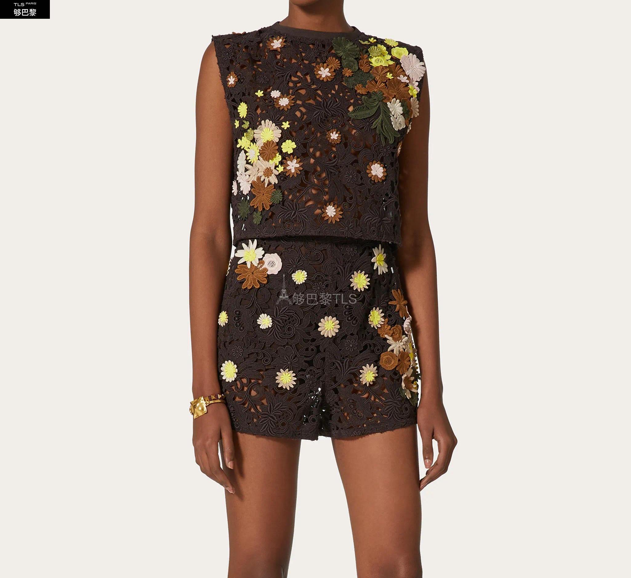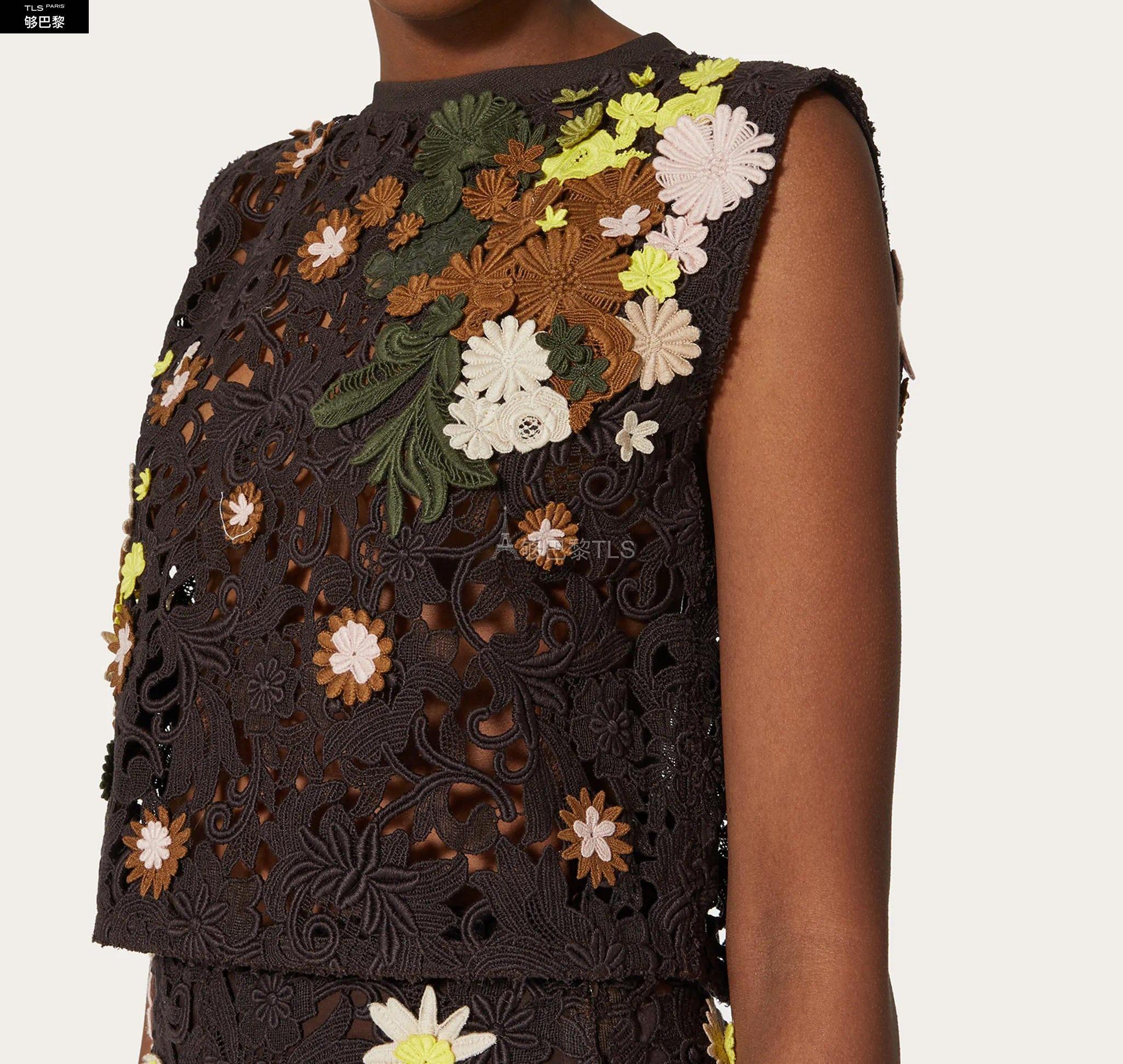 • 【包邮包税】 VALENTINO华伦天奴 21年春夏 女士 针织衫 TOP EN MACRAMé FLEURI BRODé VB0AE5X03QGW39 预定商品1-3周发货