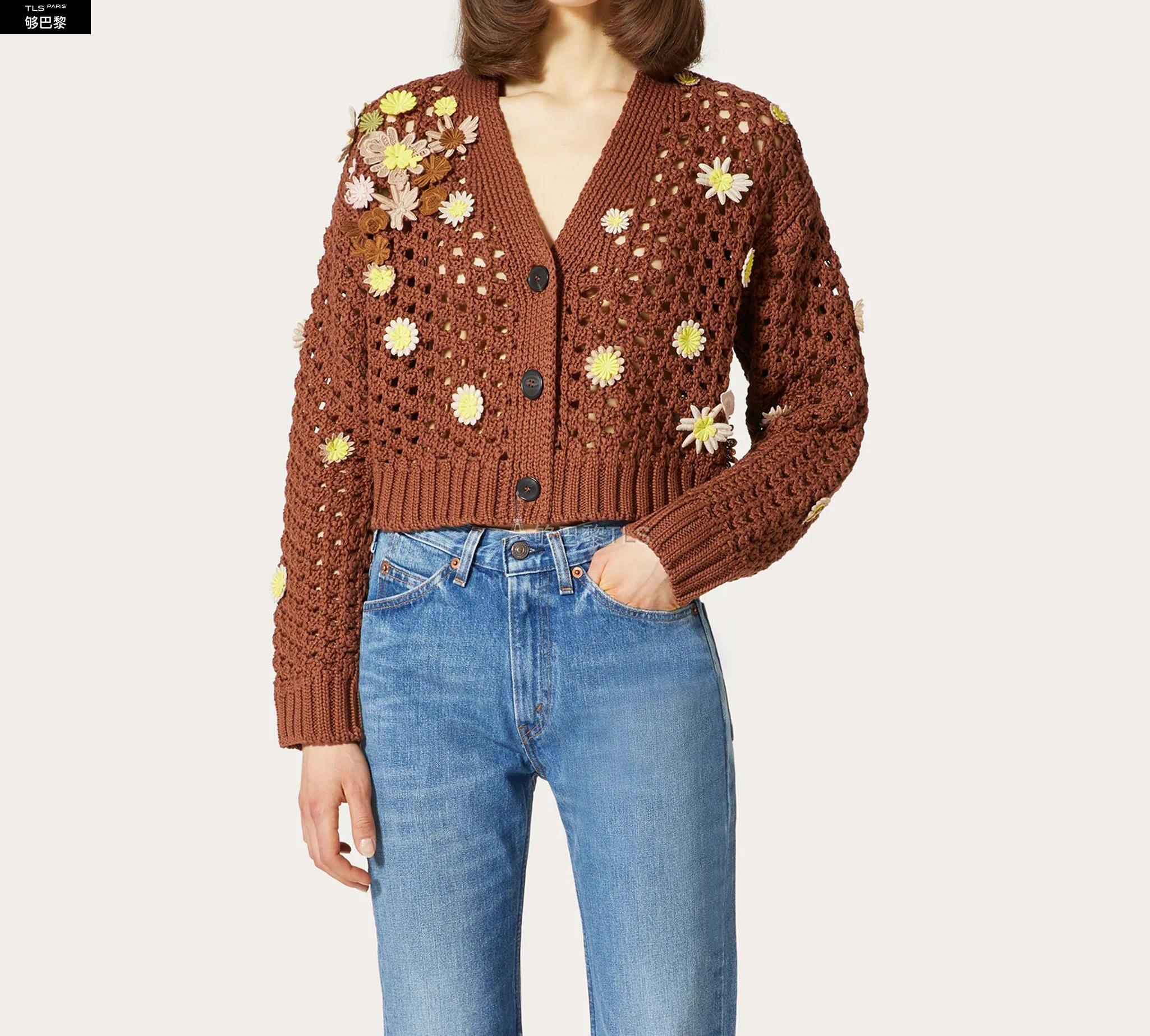 【包郵包稅】VALENTINO華倫天奴21年春夏女士針織衫CARDIGAN EN COTON BRODéVB0KA02G6E3F51預定商品1-3周發貨