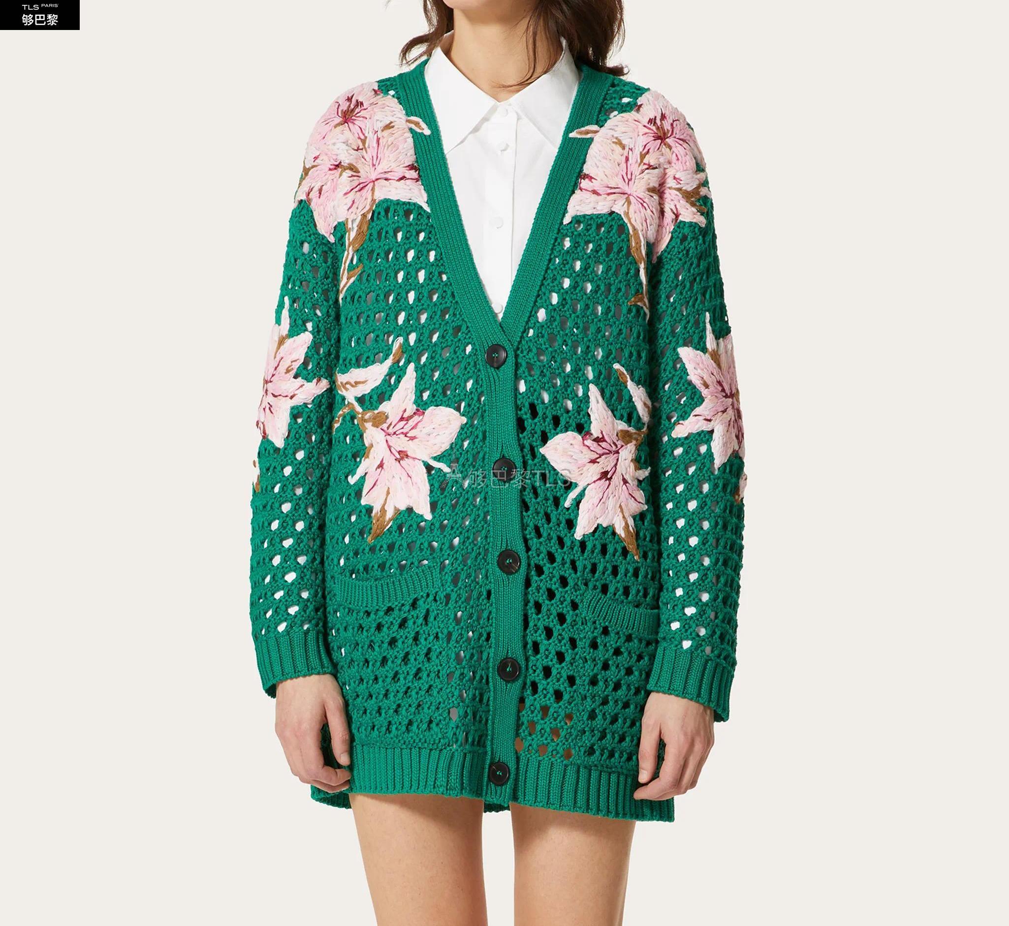 【包郵包稅】VALENTINO華倫天奴21年春夏女士針織衫CARDIGAN EN COTON BRODéVB0KA02C6DTIR0預定商品1-3周發貨