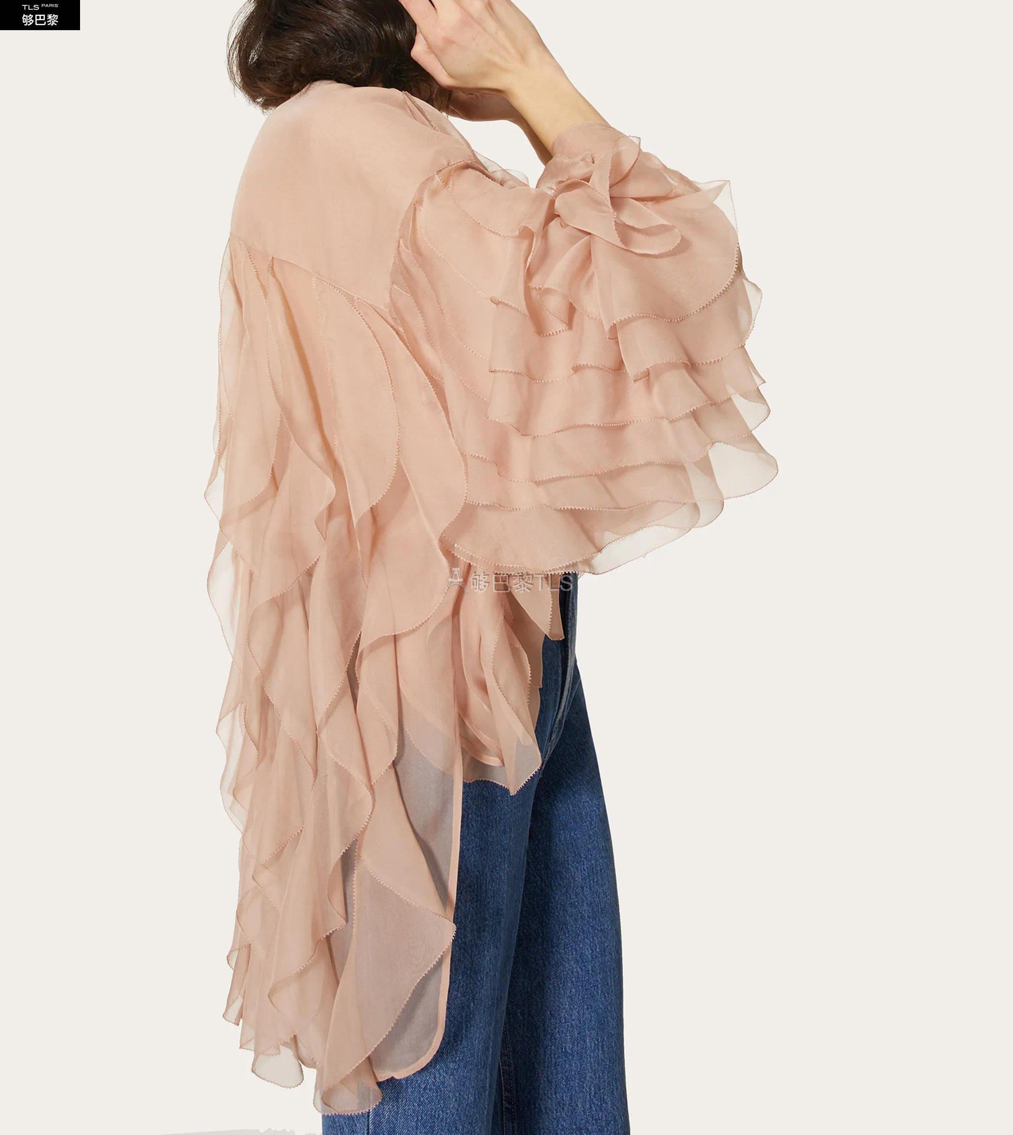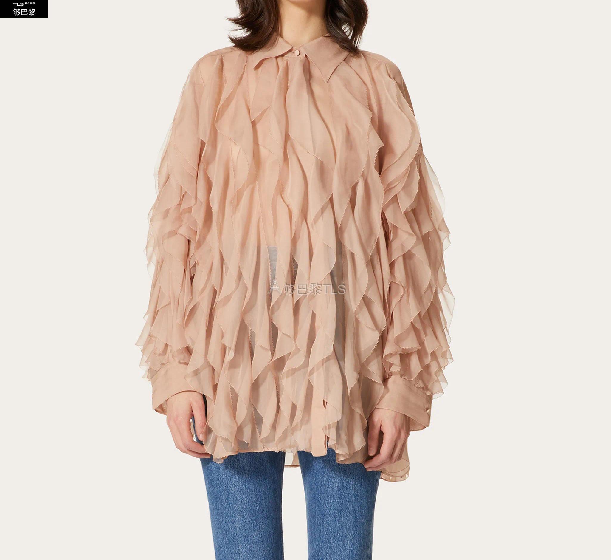 【包郵包稅】VALENTINO華倫天奴21年春夏女士長袖襯衫CHEMISIER EN MOUSSELINE VB0AB2652UPS69預定商品1-3周發貨