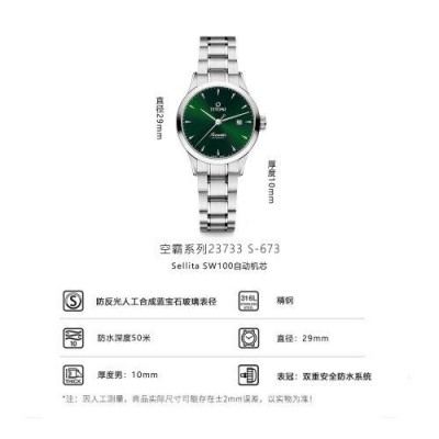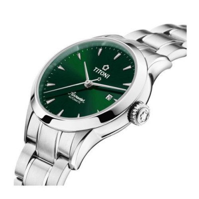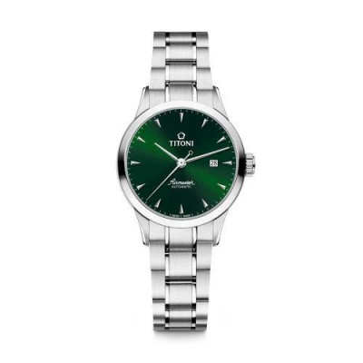 首頁 > 腕表 > 梅花 > TITONI/梅花瑞士手錶空霸系列時尚優雅休閒商務款自動機械女錶29mm綠盤鋼帶23733 S-673