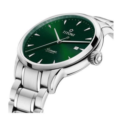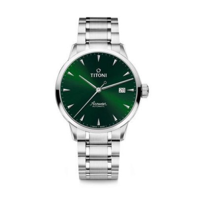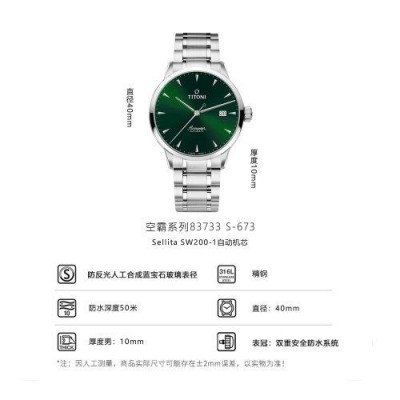 首頁 > 腕表 > 梅花 > TITONI/梅花瑞士手錶空霸系列簡約時尚商務休閒自動機械男士腕表40mm綠盤鋼帶83733 S-673
