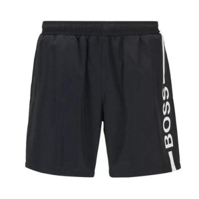 HUGO BOSS/雨果博斯【21春夏】男士黑色微标印花饰尼龙休闲运动沙滩裤短裤【爆款主推现货】