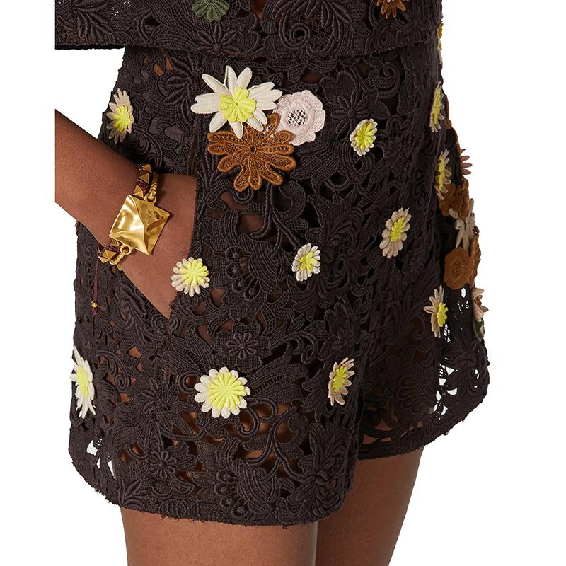 【包稅】Valentino/華倫天奴21年春夏新款女士烏木色/多色棉質刺繡花朵花卉短褲VB0AE5X03QGW39