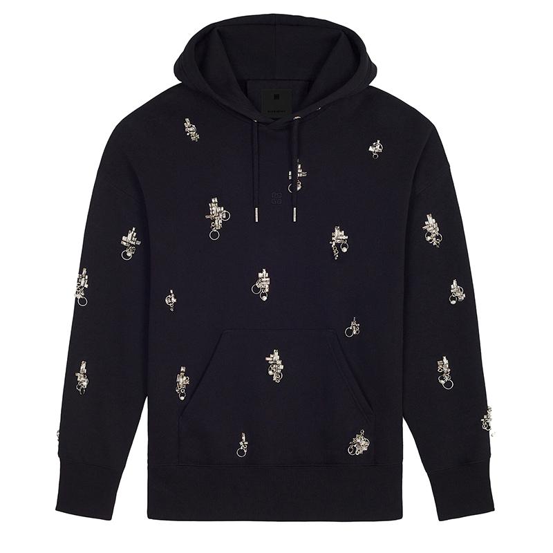 【包稅】Givenchy/紀梵希2021年新款女士黑色棉質珠寶刺繡超大衛衣BWJ01ZG0QV-008