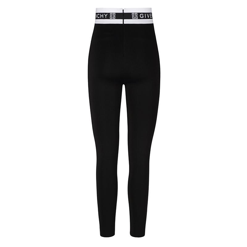 黑色打底裤,黑色和白色松紧腰带,饰有GIVENCHY 4G LOGO图案。