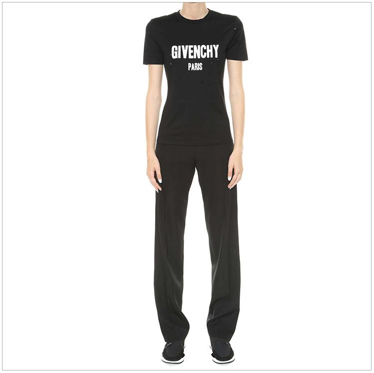 Givenchy紀梵希女士服裝21春夏黑色簡約羊毛休閒褲女士休閒褲