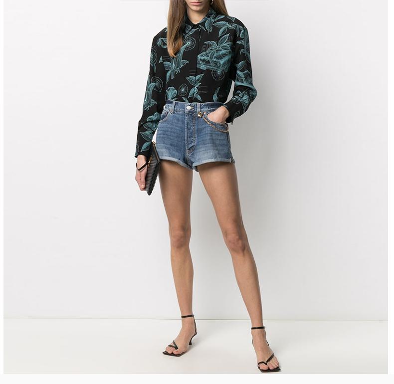 GIVENCHY 纪梵希 女士 服装 21春夏 蓝色链条装饰卷边休闲短裤 女士短裤