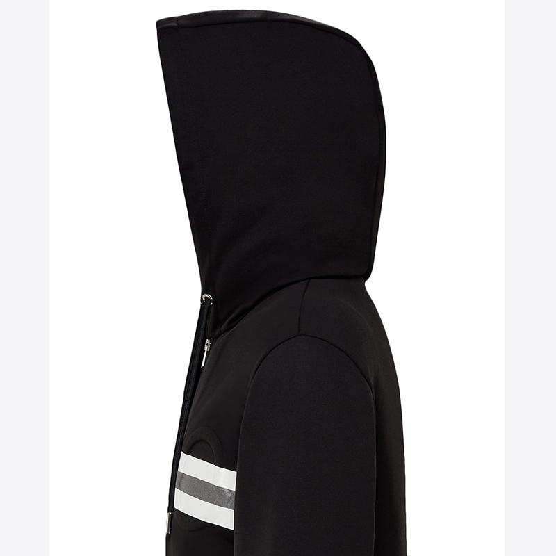 这款男士运动衫融合了运动服的灵感和Moncler的性格。它配有束带兜帽,拉链袋,按扣口袋和双向拉链封口,可自定义佩戴方式。它的特色是带有反光图案的表带,胸口饰有压纹Moncler徽标。