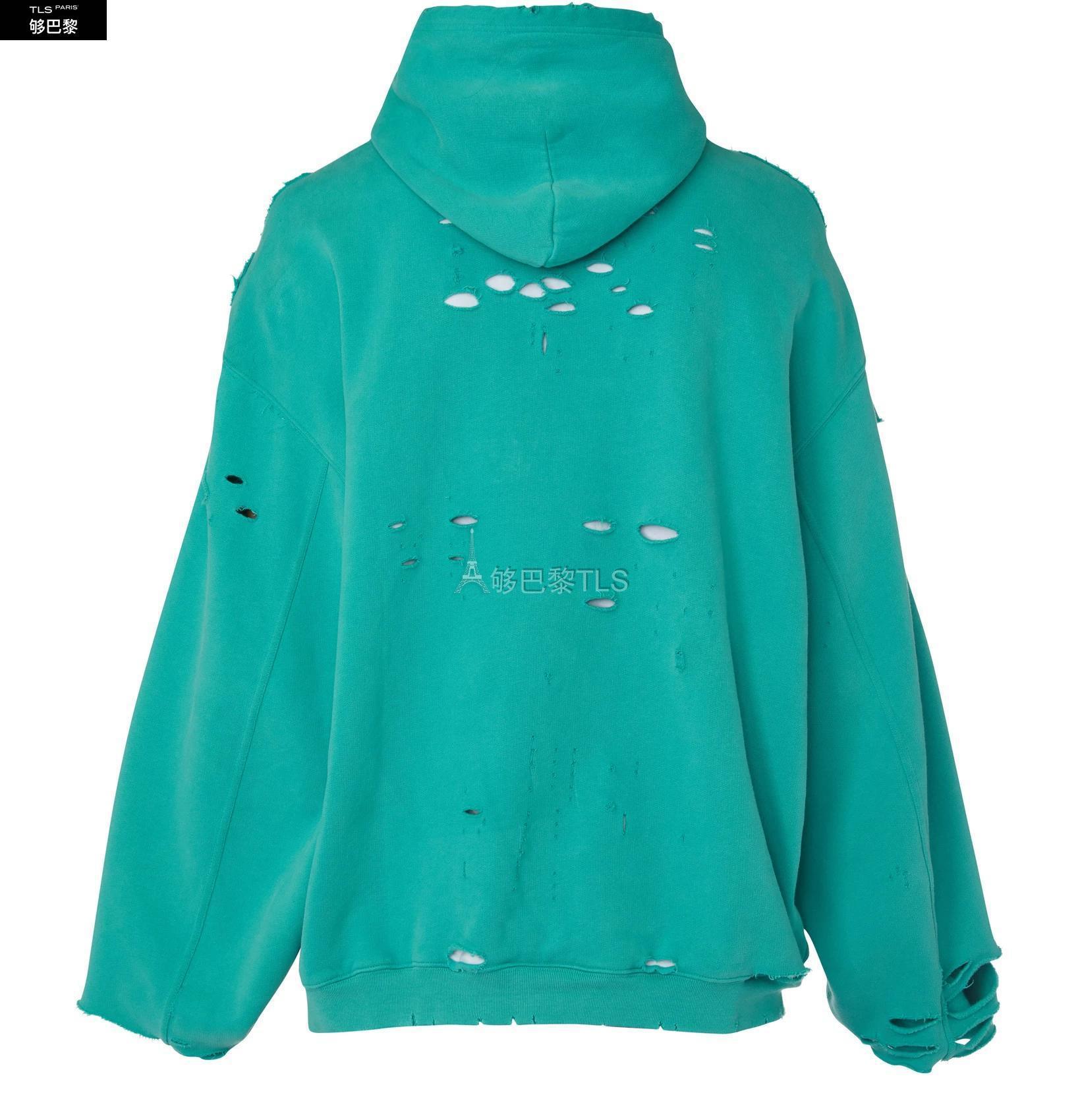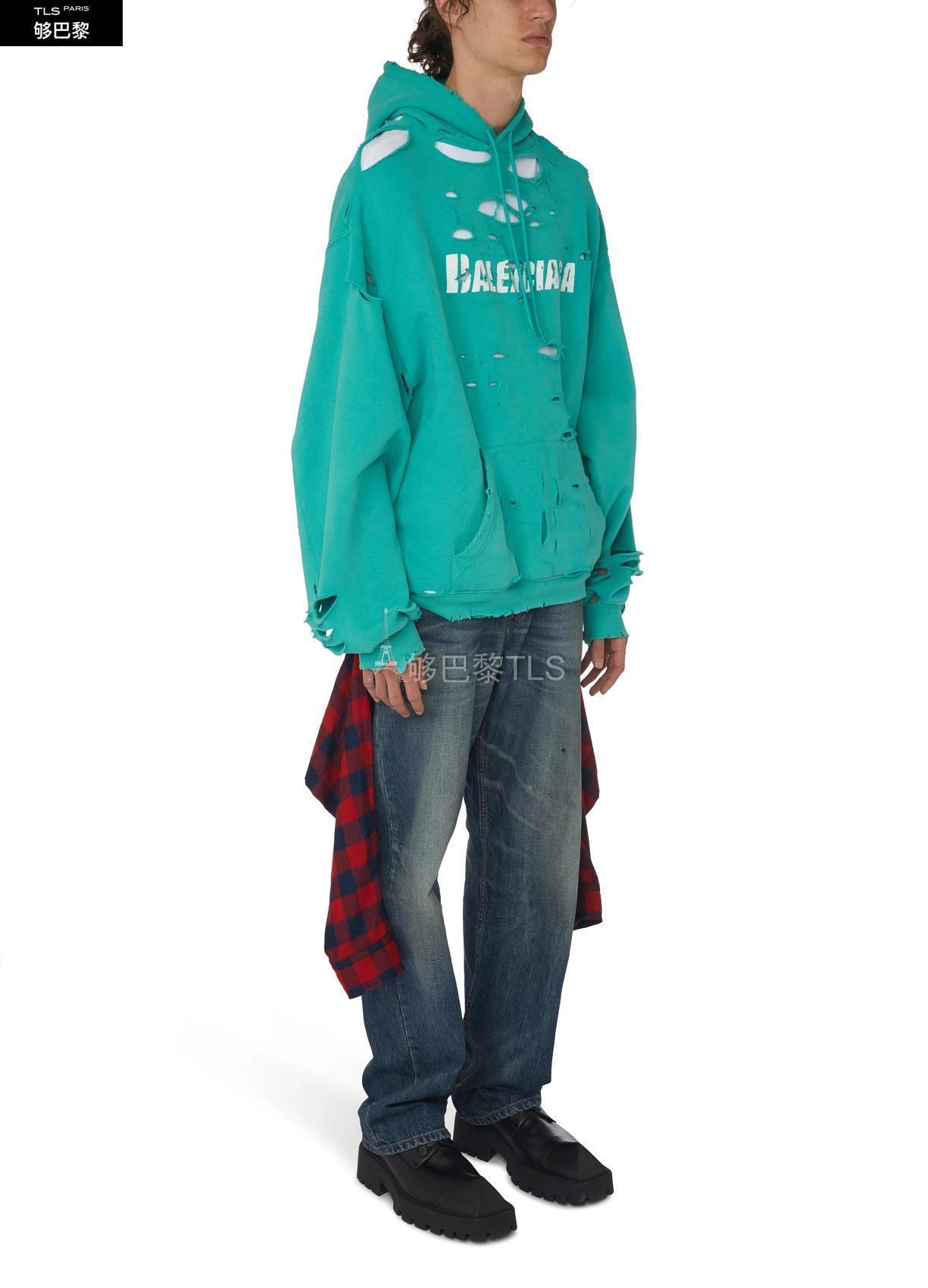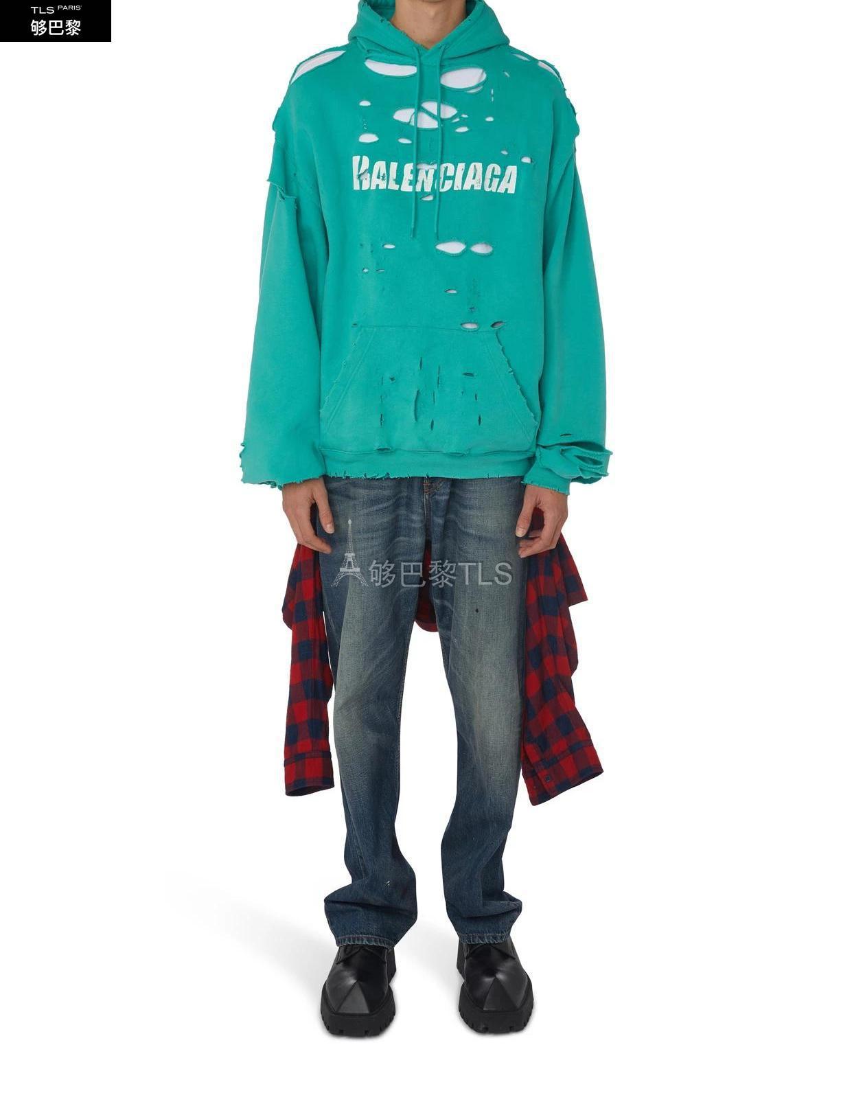 • 【包邮包税】 BALENCIAGA巴黎世家 21年春夏 男士 卫衣 Destroyed 系列连帽衫 BAL7THNRBLU 预定商品1-3周发货