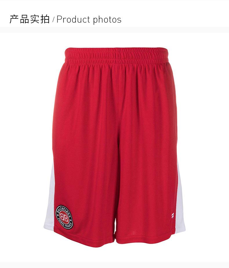 【預計兩周左右發貨】BALENCIAGA巴黎世家男士服裝21春夏紅色時尚寬鬆圓形LOGO休閒短褲男士短褲