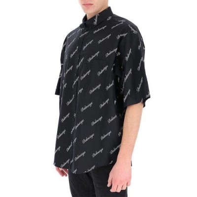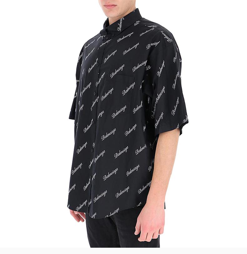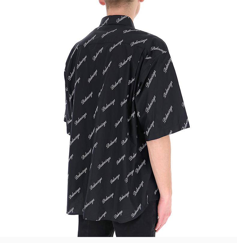 【預計兩周左右發貨】BALENCIAGA巴黎世家男士服裝21春夏黑色翻領字母LOGO短袖棉質襯衫男士短袖襯衫