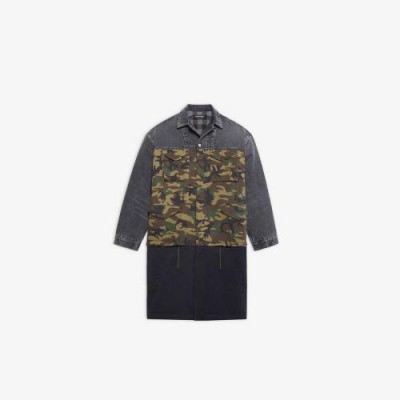 • Cotton drill, washed denim and stretch gabardine patchwork• Checked cotton lining• Set-in sleeve construction• Shirt collar• Knee length• Concealed butonned front with 1 visible button at top• Made in Japan• Dry cleaning• Model is 190 cm / 6'2.80" and is wearing a FR size 46
