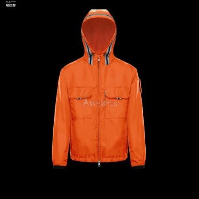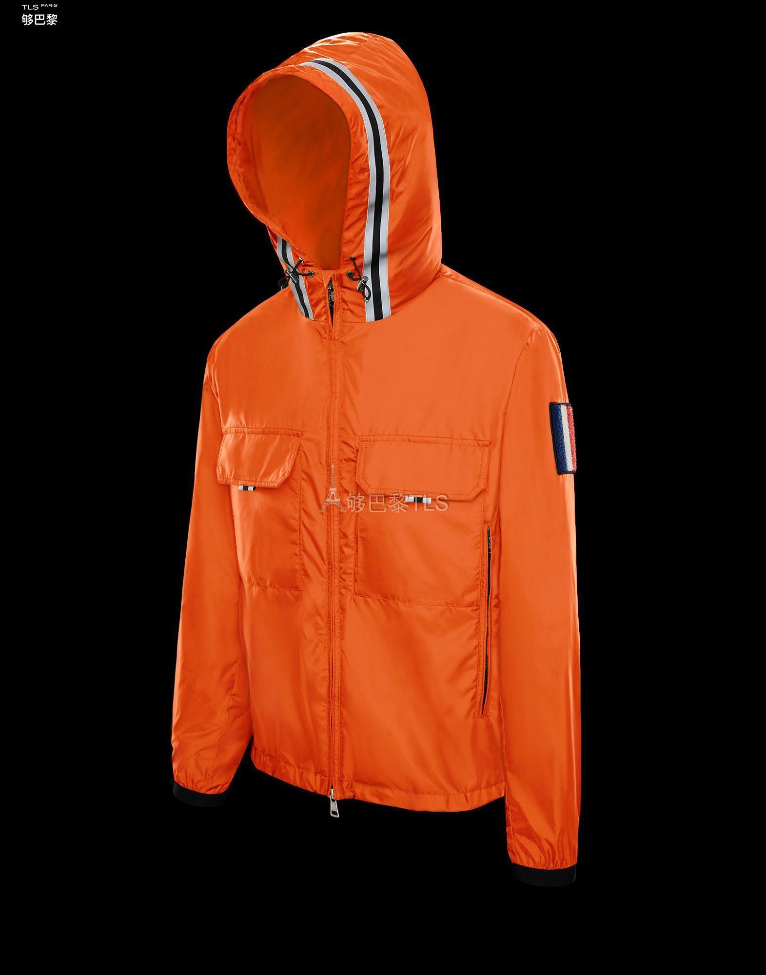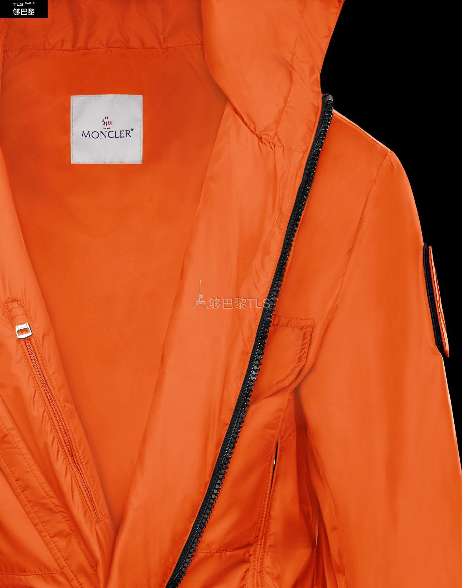 男士工艺尼龙风衣连衣风帽压铸拉链前门襟尼龙拉链嵌线口袋前开门襟和风帽边缘点缀镶边弹性平纹面料袖口和下摆风帽和下摆配搭弹性拉绳Moncler 毡艺商标短款式