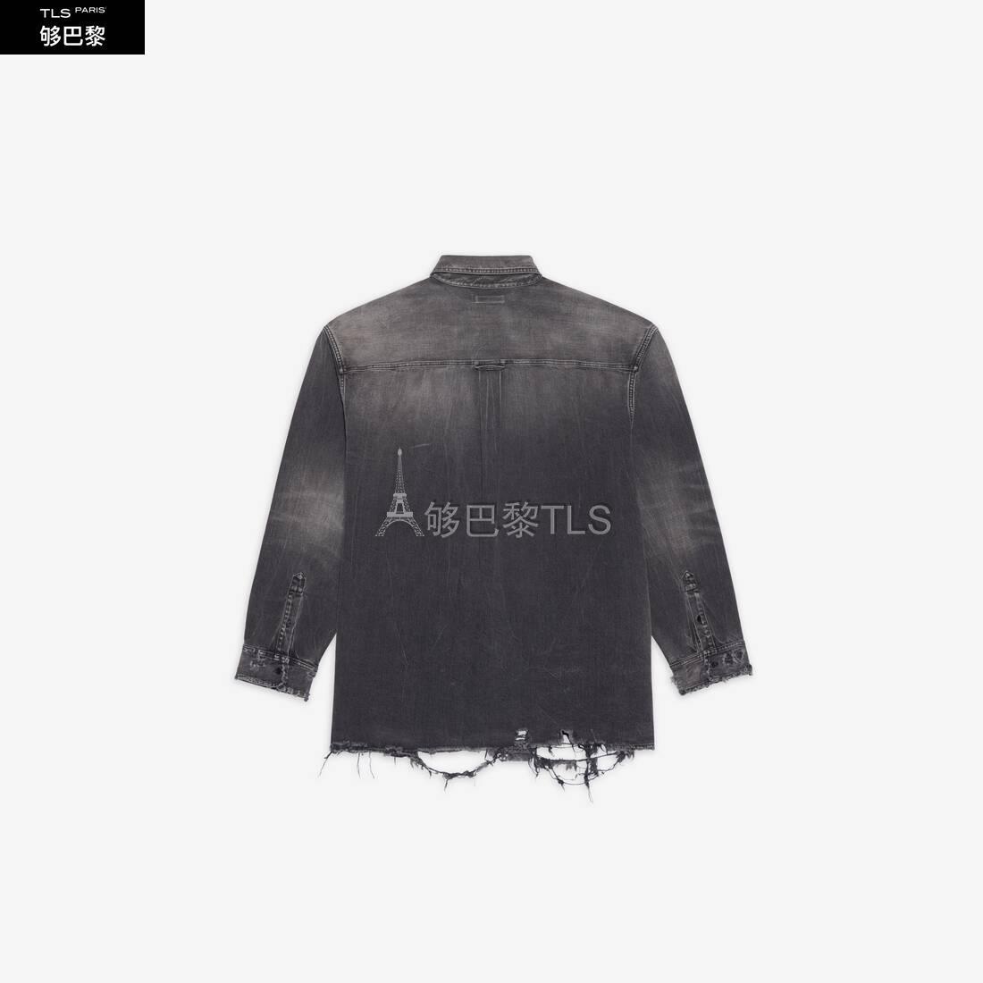 • Allover ripped organic Japanese twill • Oversize fit • 1 patch pocket at side • 7 button front • Balenciaga engraved flex buttons • Balenciaga embroidery at side• Made in Japan • Dry cleaning • Model is 177 cm / 5'68'' inch and is wearing a FR size S