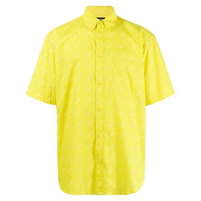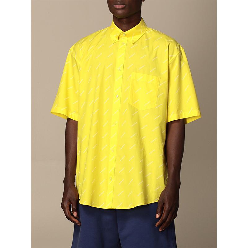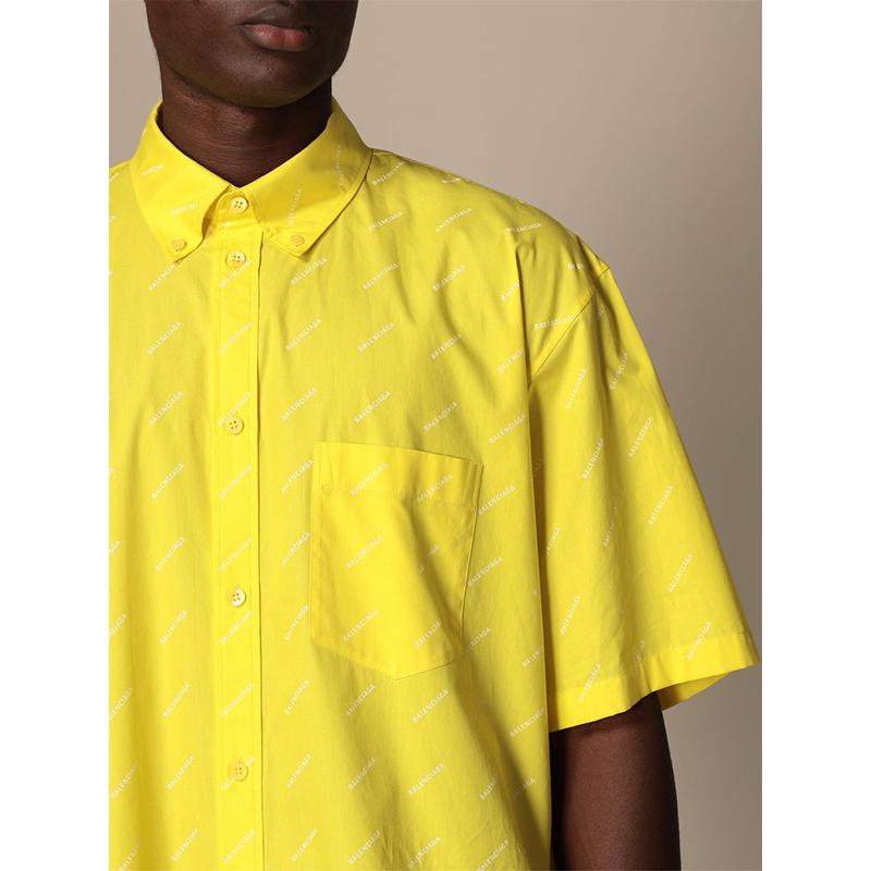 Balenciaga/巴黎世家 21春夏 男士 短袖衬衫 满版字母logo印花 黄色 534332TBL96 7201【现货】