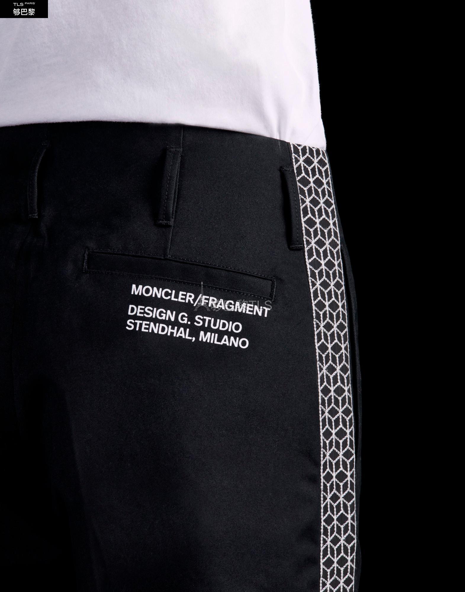 Ce pantalon en gabardine de coton interprete l’inspiration de la collection n° 7 Moncler Fragment Hiroshi Fujiwara, du projet Moncler Genius. Un essentiel de la garde-robe masculine avec une jambe droite, un pli repasse, une fine ceinture avec passants, des poches italiennes sur les cotes et passepoilees au dos. La note graphique et distinctive du projet se retrouve dans les bandes en nylon avec motif cubes brodes sur les cotes.