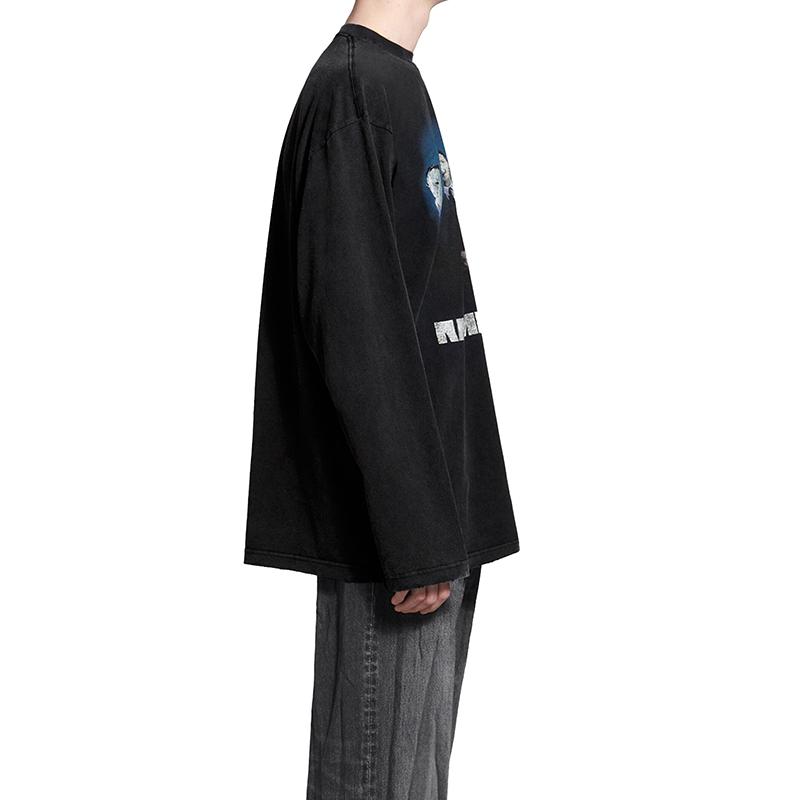 【包稅】Balenciaga/巴黎世家2021年新款男士黑色復古印花平紋針織Boxy Rammstein長袖T恤651796TLV511000
