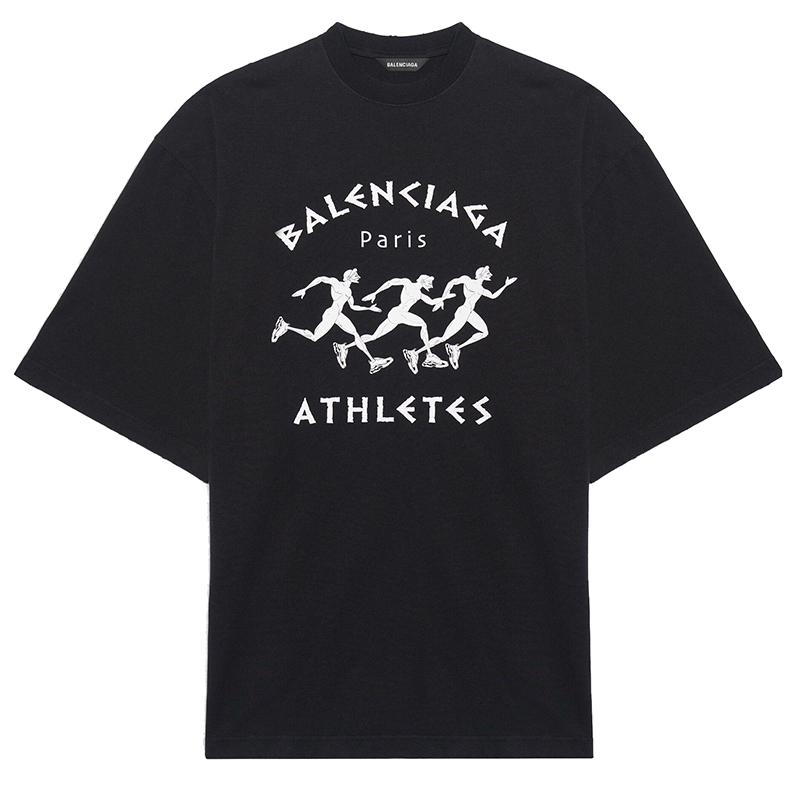 【包稅】Balenciaga/巴黎世家2021年新款男士黑色有機棉馬拉松T恤641614TJVK61070