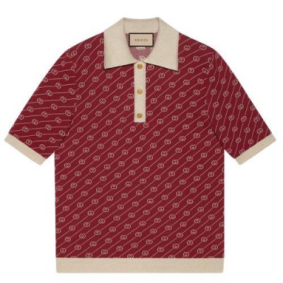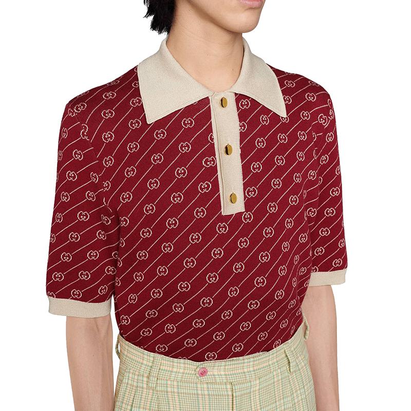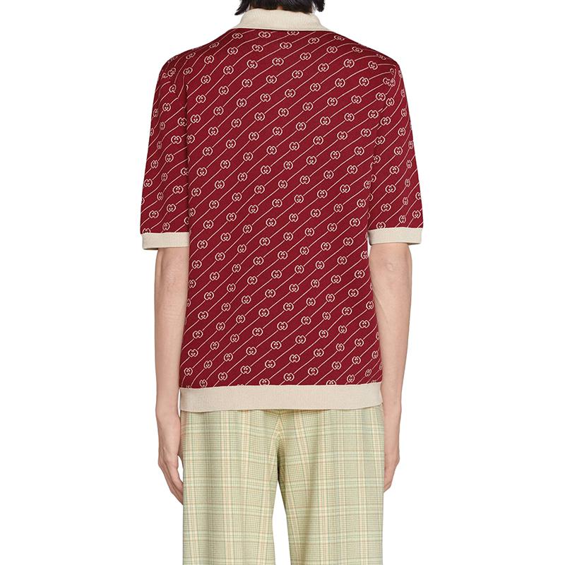 【包稅】GUCCI/古馳21年春夏新款男士GG酒紅色棉質和真絲對角提花短袖polo衫655100XKBWA6064