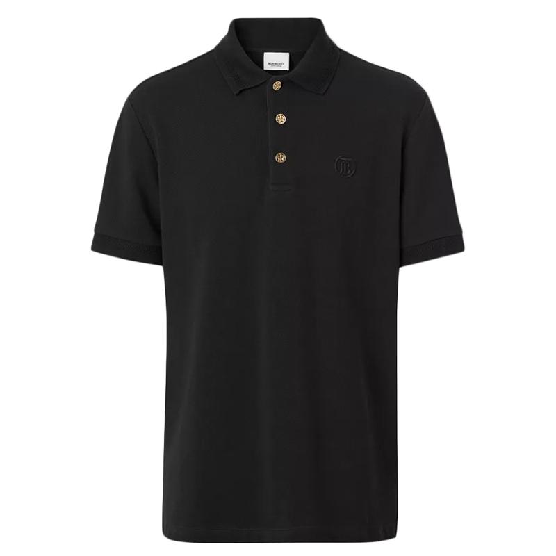 【包税】BURBERRY/博柏利 男士黑色棉质piqué短袖POLO衫80374351