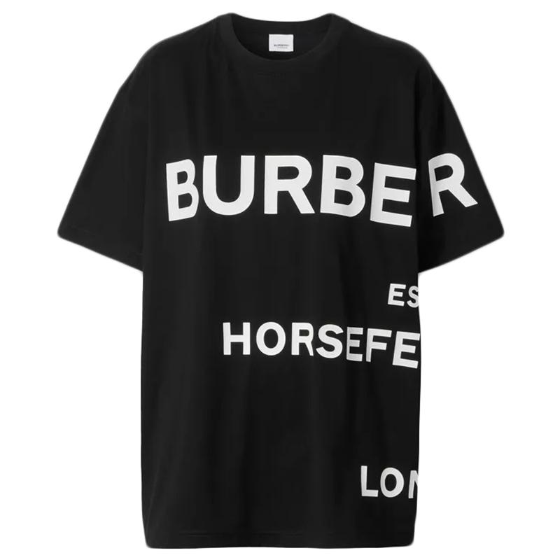 • 【包税】BURBERRY/博柏利 21年春夏新款 男士黑白色Horseferry 印花棉质宽松 T 恤衫80406941