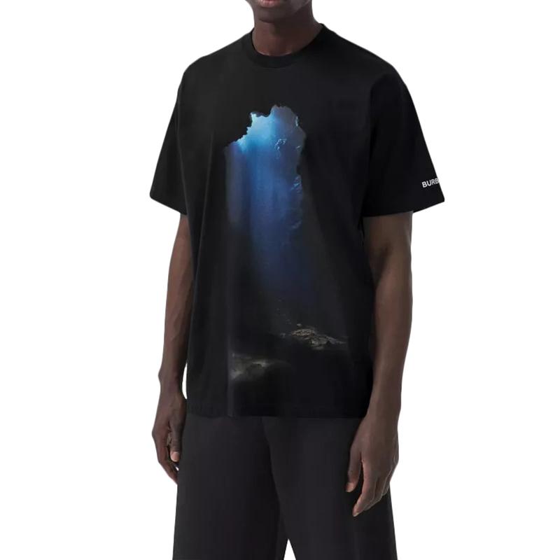 【包税】BURBERRY/博柏利 21年春夏新款 男士黑色蒙太奇印花棉质宽松 T 恤衫80406841