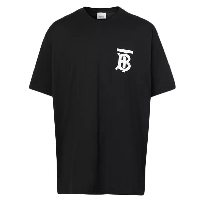 【包稅】BURBERRY/博柏利經典款男士黑色專屬標識圖案棉質寬鬆T恤衫80174841