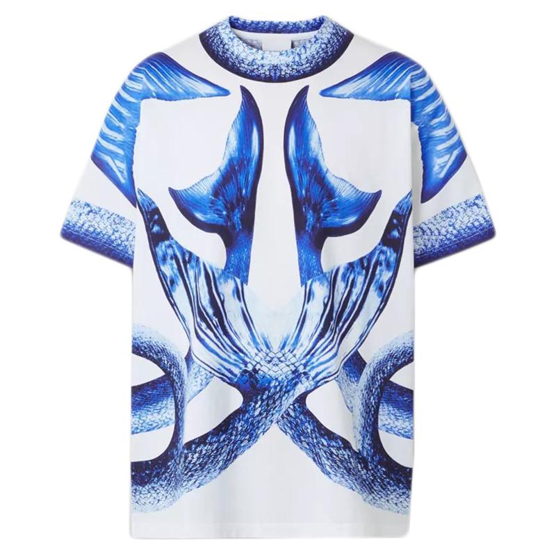 【包稅】BURBERRY/博柏利2021年新款海洋頌歌系列男士亮藍色美人魚尾巴印花棉質超大T恤80406861