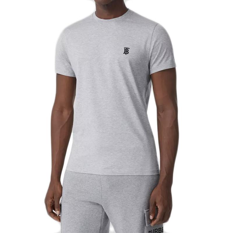 【包稅】BURBERRY/博柏利經典款男士淺麻灰色專屬標識圖案棉質T恤衫80140231