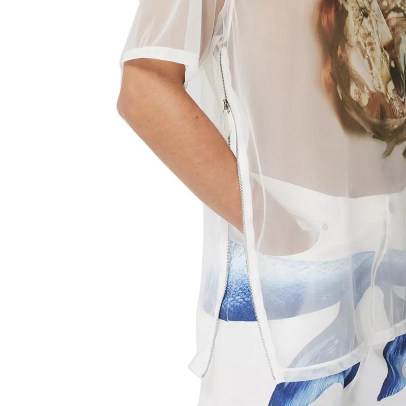 • 轻盈的棉质平织 T 恤衫,装饰寓意十足的图案设计,图案诞生于品牌伦敦设计工作室。搭配拉链侧边开衩及皮革饰边。