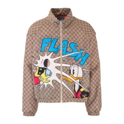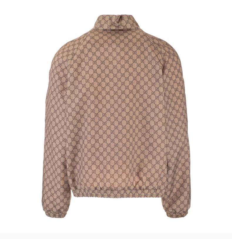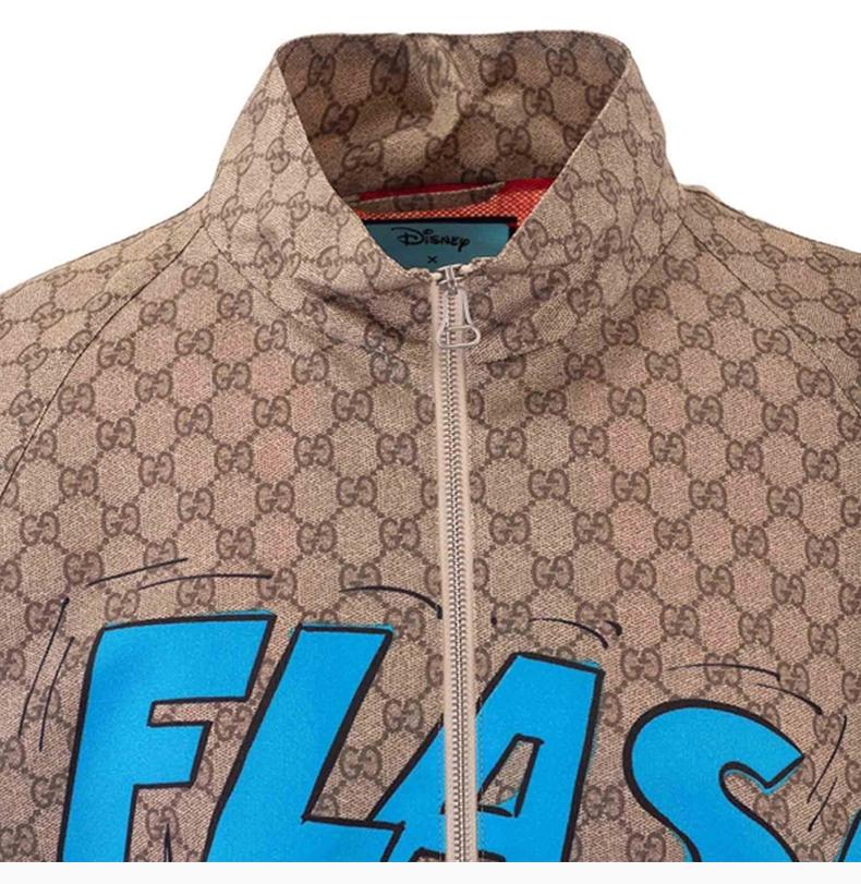 GUCCI古馳男士服裝21春夏烏木色立領拉鍊唐老鴨圖案老花格紋外套夾克男士夾克