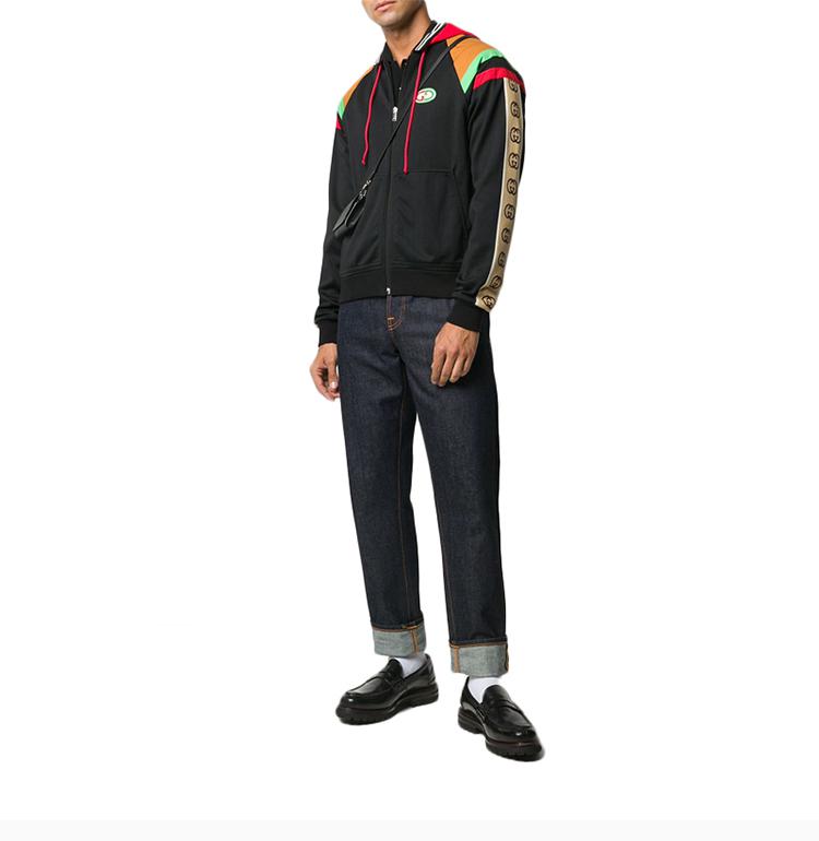 GUCCI 古驰 男士 服装 21春夏 黑色连帽抽身侧面双G印花棉质夹克外套 男士夹克