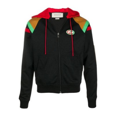 首頁 > 腕表 > 古馳 > GUCCI古馳男士服裝21春夏黑色連帽抽身側面雙G印花棉質夾克外套男士夾克