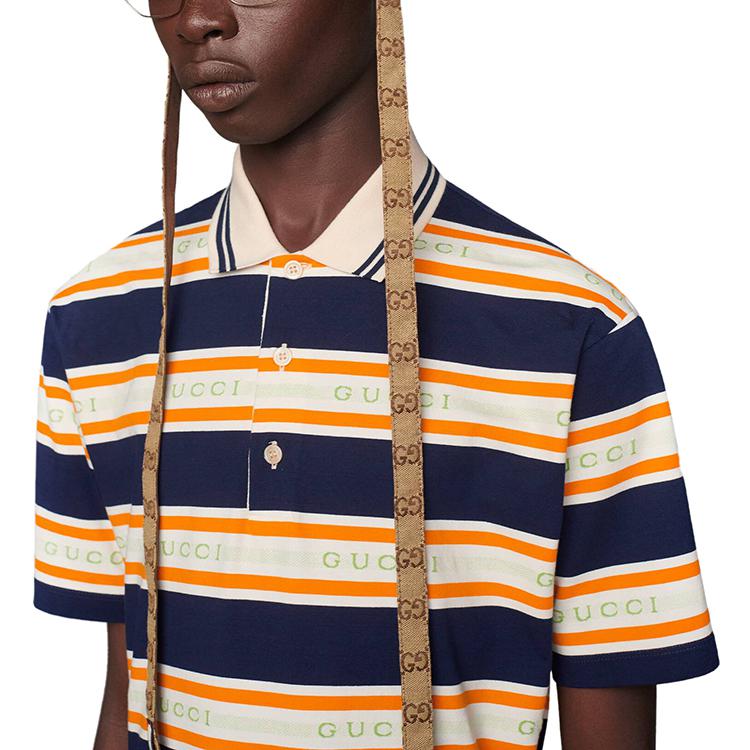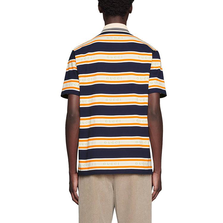 GUCCI/古馳Gucci提花條紋棉質男士短POLO 645258 XJC6I