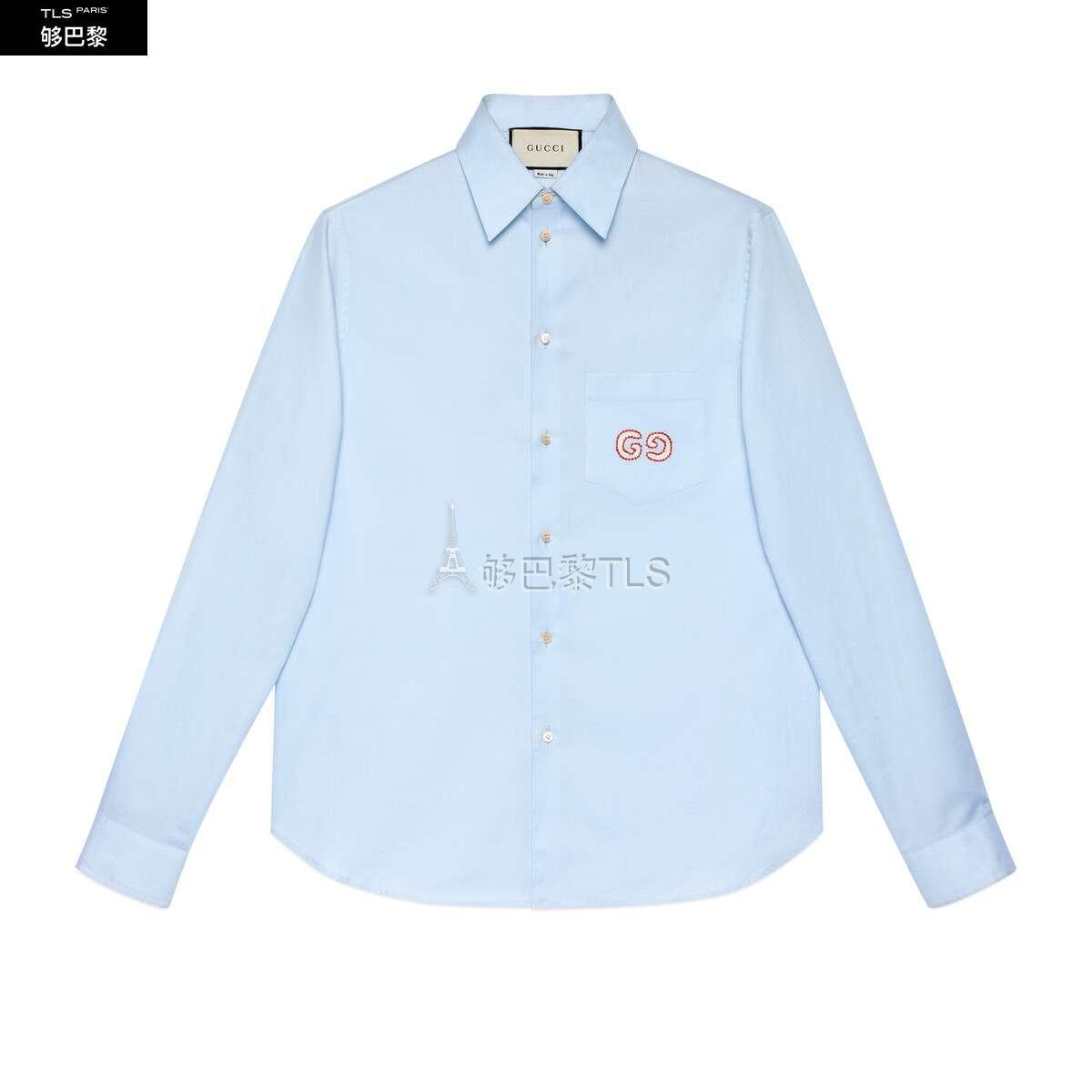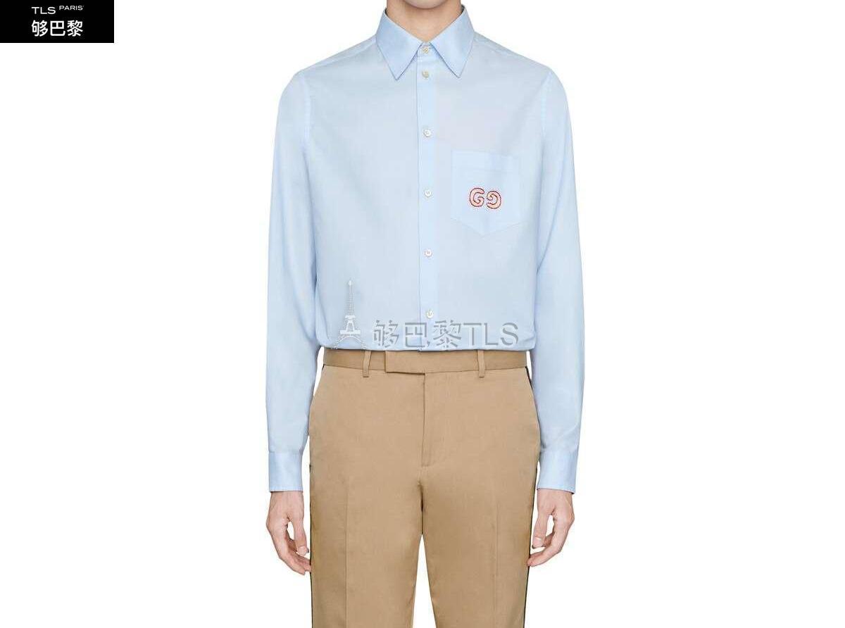 在这款浅蓝色牛津棉衬衫中,巧妙运用更新系列的趣味图案字体呈现GG刺绣细节,配以尖领和方形剪裁,打造出众造型。在每一季,都会锐意革新灵感源自品牌创始人GuccioGucci姓名首字母的GG字母交织图案。