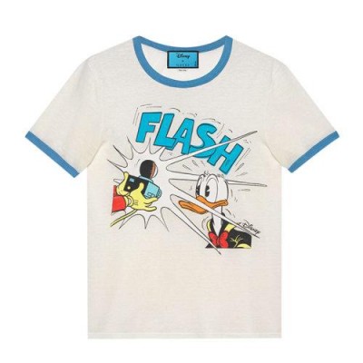 GUCCI/古驰 唐老鸭印花棉麻混纺男士短袖T恤 645302 XJC8W