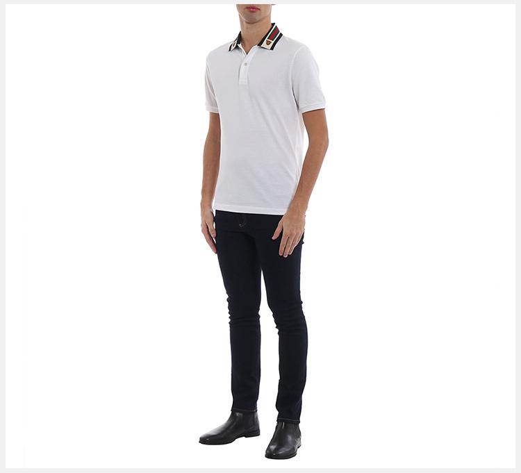 GUCCI/古馳棉質飾條紋織帶虎頭刺繡商務時尚休閒polo衫男士短袖T恤545714 XJAGU