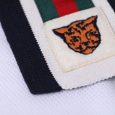 GUCCI/古驰  棉质饰条纹织带虎头刺绣商务时尚休闲polo衫男士短袖T恤  545714 XJAGU