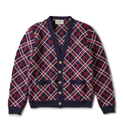 首頁 > 腕表 > 古馳 > GUCCI古馳男裝服飾拼色棉質GG圖案男士針織衫毛衣