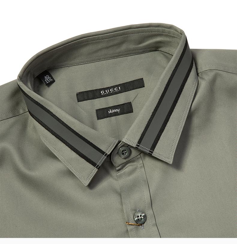 GUCCI/古馳【21春夏新款】男士綠色棉質商務休閒長袖襯衫236408-Z0868