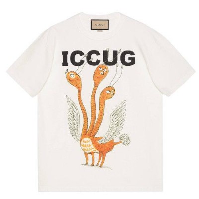 【包稅】預訂款1-2周GUCCI/古馳21年春夏新款Freya Hartas系列男士白色棉質動物印花T恤548334XJDJV9095