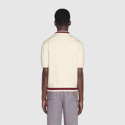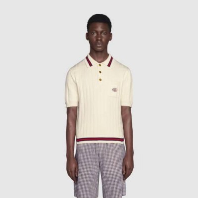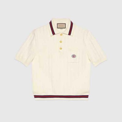 【預售】GUCCI/古馳針織棉織帶短袖毛衣忌廉白/紅藍條紋653624 XKBUR 9182