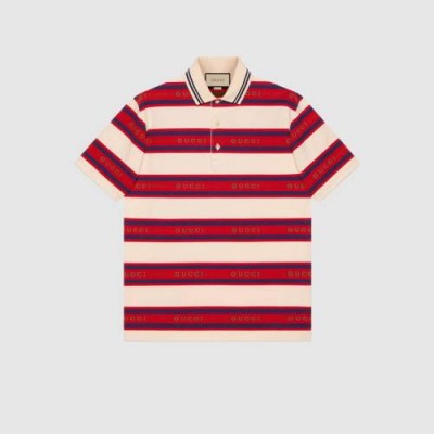 【預售】GUCCI/古馳Gucci提花條紋棉質Polo衫紅藍條紋645258 XJC6I 9209