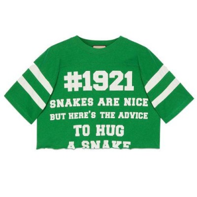 受温柔的英国童谣启发的版画与众议院的各种元素相结合,重新诠释了重要作品。在这件绿色T恤的正面,古驰(Gucci)创立之年伴随着这样的名言:“蛇很好,但这里是拥抱蛇的建议”。在背面,铭文“ Loved”和“ Sin Amore Nihil”揭示了品牌的浪漫灵感。