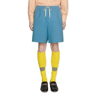 【包税】GUCCI/古驰 2021年新款男士蓝色帆布棉短裤 659825ZAGP54371