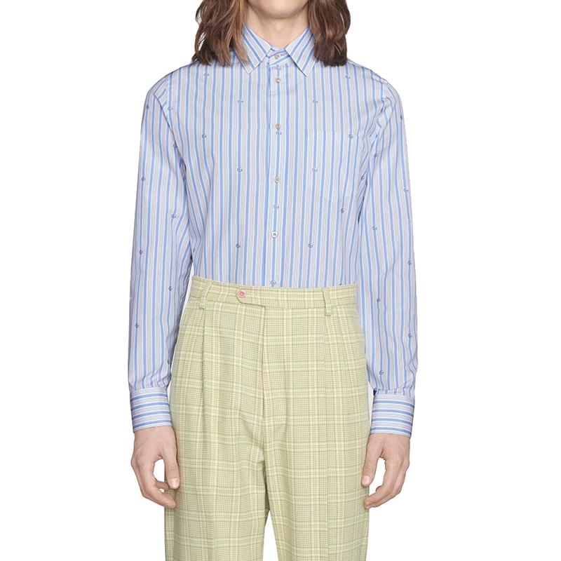 【包稅】GUCCI/古馳2021年新款男士淺藍色修身棉質襯衫659875ZAGV59018