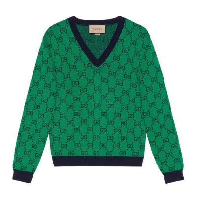 【包稅】GUCCI/古馳2021年新款男士綠色V領羊毛毛衣661155XKBXI3465