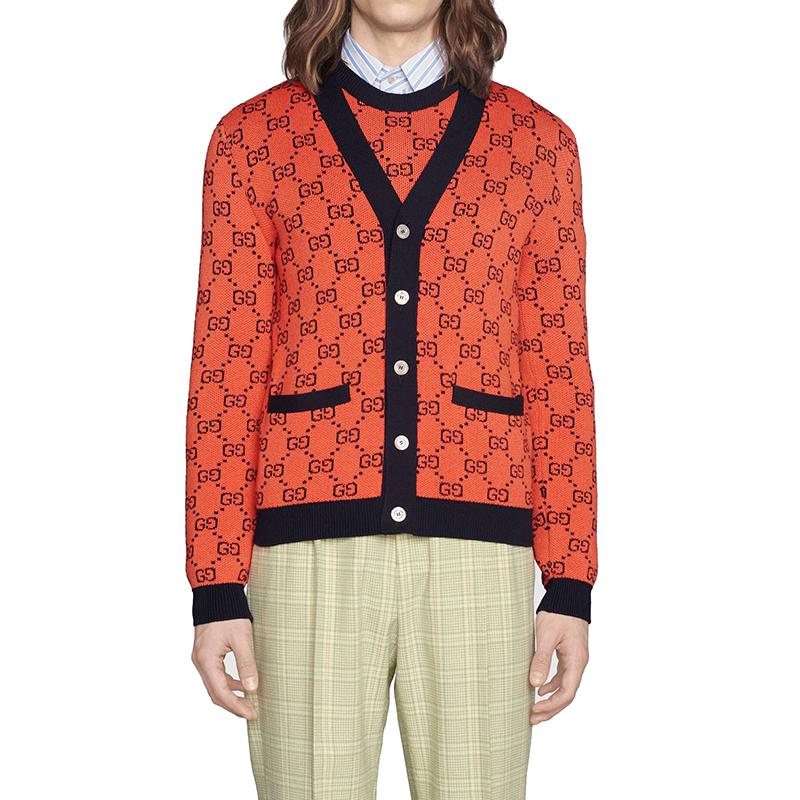 【包稅】GUCCI/古馳2021年新款男士橙色羊毛開衫661156XKBXI7548