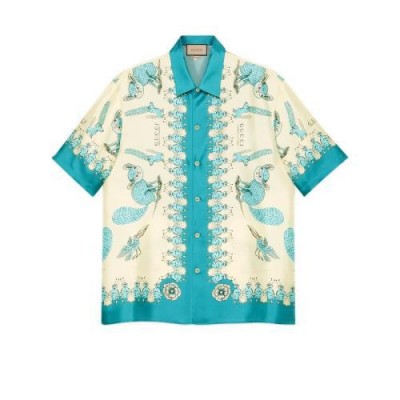 【包郵包稅】GUCCI古馳21年春夏男士Freya Hartas印花斜紋真絲襯衫654886 ZAGWY 4262